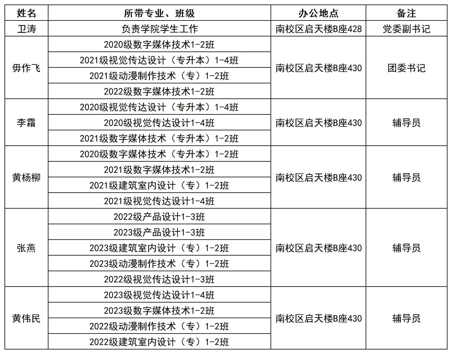 传媒与艺术设计学院学生工作队伍