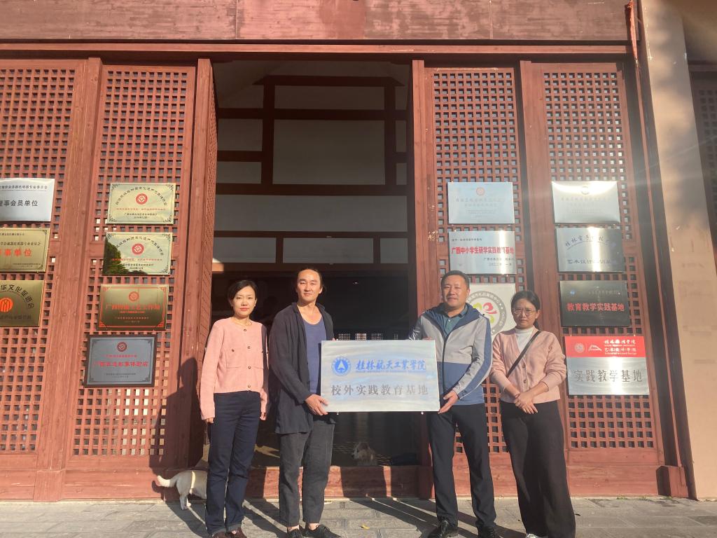 11月6日院长助理、产品设计教研室主任宋全昌带队走访桂林天然胎漆器有限公司有限公司位于桂林园博园内的桂林漆器生产性保护示范基地,与桂林市文促会非遗文化专委会主任、桂林漆器制作技艺(区级)代表性传承人王伯杨先生签署《伟德国际1946源于英国实践教育基地协议书》,并举行校外实践教育基地授牌仪式。