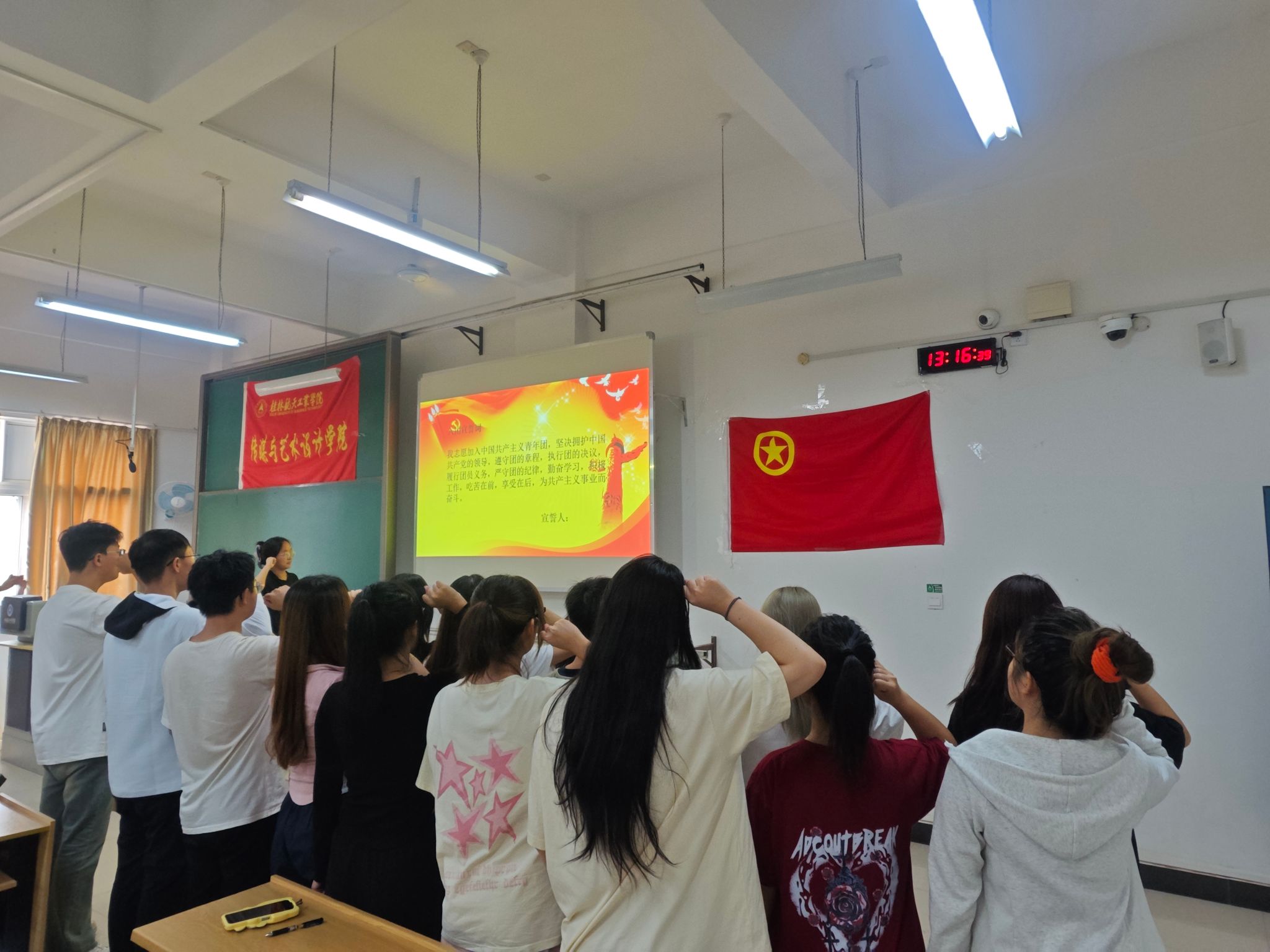 在入团宣誓仪式上,由团员代表李瑞祯带领新团员宣誓,大家举起右拳,以坚定而洪亮的声音郑重宣誓,他们承诺将继承发扬共青团的优良传统,勤奋学习,积极工作,为共产主义奋斗终身。