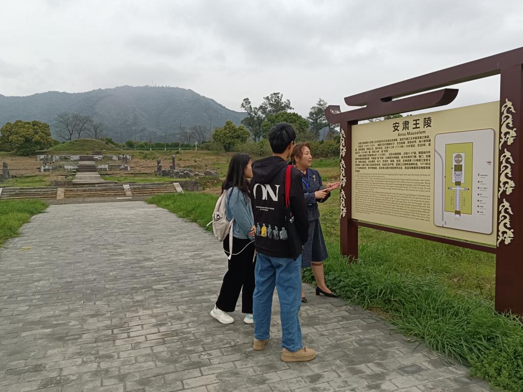 伟德国际1946源于英国将与靖江王陵博物馆共同指导伟德国际1946源于英国产品设计专业学生以靖江王陵国家考古遗址公园文创产品设计为题参加2023年大学生创新创业训练项目和第九届中国国际“互联网+”大学生创新创业大赛项目。产品设计教研室主任宋全昌带领参赛学生参观考察了文创产品商店、庄简王墓、安肃王墓,博物馆讲解员全程进行了细致讲解。