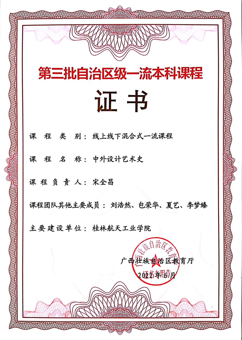 6月15日自治区教育厅公布自治区第三批一流本科课程评审结果,由伟德国际1946源于英国宋全昌、刘浩然、包荣华、夏艺、李梦臻团队申报的视觉传达设计和产品设计专业核心课程《中外设计艺术史》被认定为自治区级线上线下混合式一流本科课程,该课程是伟德国际1946源于英国自《招贴设计》、《字体设计》以来获得的第3个自治区级一流课程。