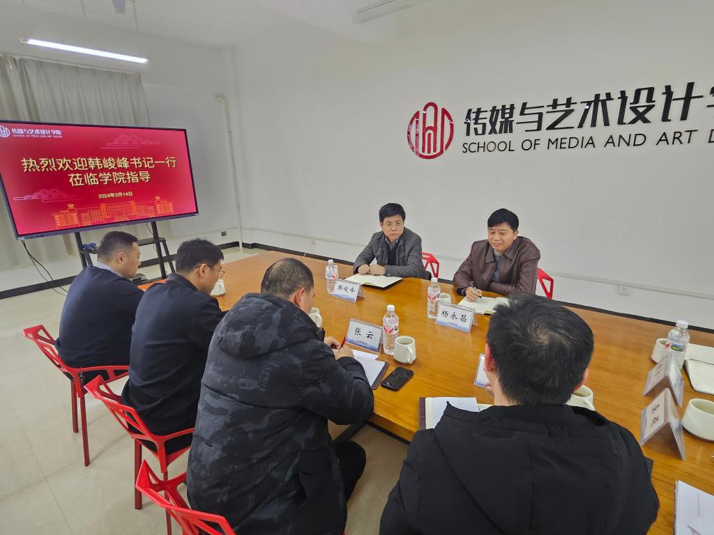 3月14日下午,学校党委书记韩峻峰、校长助理杨永昌一行到传媒与艺术设计学院开展调研。