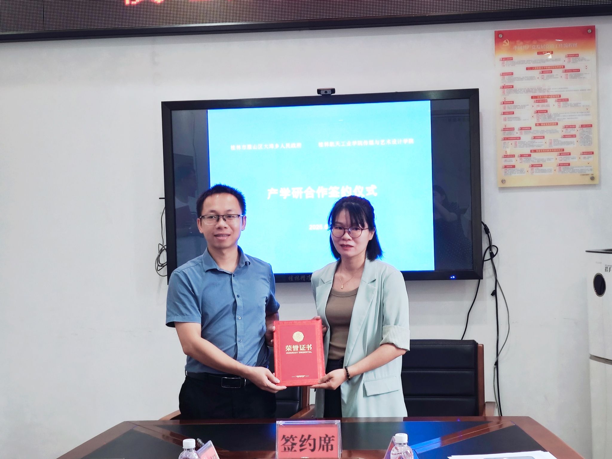 6月12日上午,刘浩然院长率师生代表一行四人赴桂林市雁山区大埠乡人民政府,开展产学研合作成果转化签约仪式,此次活动以“校地共建、产学协同、共同发展” 为主题。