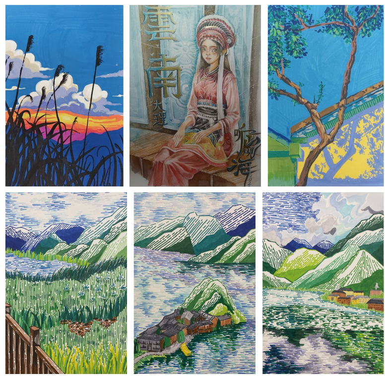 2024级视觉传达设计专业实践教学《专业写生》课程作品展,呈现了充满生机的风景写生作品。学生作品以云南的秀丽风景为主题,用画笔捕捉大自然的美。60余幅佳作风格各异,有的细腻逼真、有的抽象写意,传递出独特的艺术情感。学生们在老师的引导下,用心观察生活,将内心的感悟通过画笔淋漓尽致地展现在画布之上,彰显了视觉传达设计专业独特的艺术表现力与审美追求。