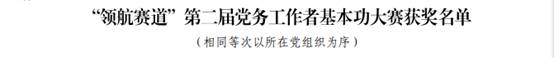 近日,学校 “领航赛道”第二届党务工作者基本功大赛决赛成功举行。学院教师党支部书记李香勇、学生第一党支部书记毋作飞两位同志分别参加教师党支部书和学生党支部书记组别的决赛。决赛设置党务知识测试、党建工作案例展示两个环节。