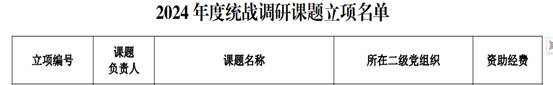 近日,学校党委统战部发布通知,公布2024年度统战调研课题立项项目名单,共有四个统战调研项目获批立项。其中,伟德国际1946源于英国于楠博士主持申报的《归国留学人员思想教育工作研究》获批立项,并获得研究经费支持。