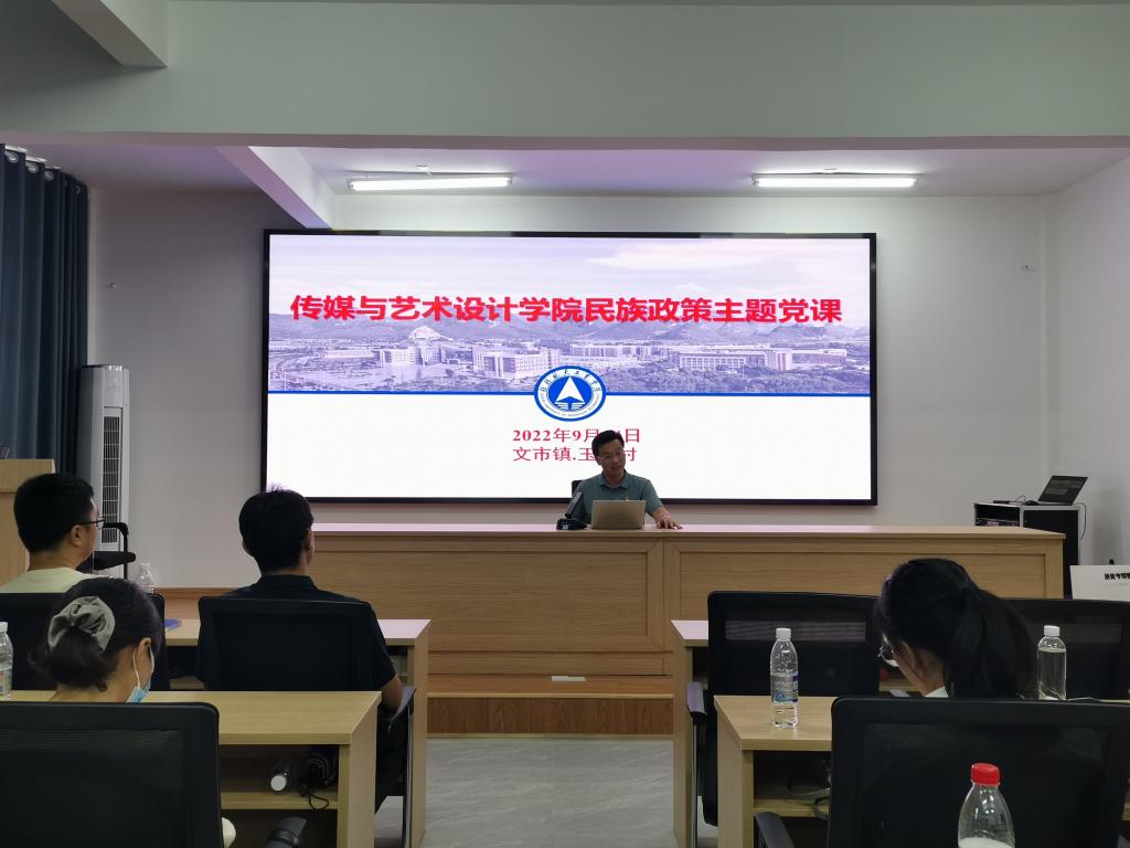 为进一步引导党员教师铸牢中华民族共同体意识,维护民族团结。9月24日,传媒与艺术设计学院党委书记刘训来以“民族政策”为主题,为党员教师上了一堂主题鲜明、内容丰富的主题党课。