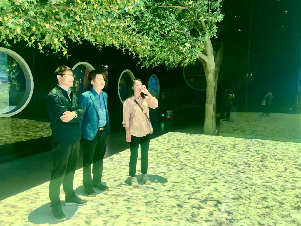 2023年11月7日上午,学院刘浩然副院长、设计基础教研室主任夏艺、谷万里博士一行3人赴桂花公社进行调研交流。刘副院长一行考察了桂花公社文化体验馆与整个园区后,与桂花公社桂林市顺昌食品有限公司总经理助理、桂林桂花公社文化传播有限公司副董事陈彦宏、运营经理李雨洛共同就共同开展项目开发、共建产业学院、共同指导学生创新创业等进行交流研讨,并达成了初步的合作意向,双方拟签署校企合作协议,后续基于实习就业、人才培养、联合研究、学术交流与设计服务等具体内容开展进一步深度合作。