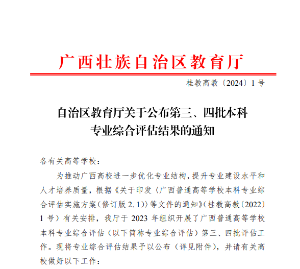 1月2日,自治区教育厅印发文件《自治区教育厅关于公布第三、四批本科专业综合评估结果的通知》(桂教高教[2024]1号),在自治区教育厅组织的2023年广西普通高等学校本科专业综合评估第三、四批评估工作中,伟德国际1946源于英国视觉传达设计专业获评为自治区“四星”本科专业。据悉,此次本科专业综合评估,共有21所本科高校的视觉传达设计专业参加评估,其中, 11所高校获评“四星”本科专业。