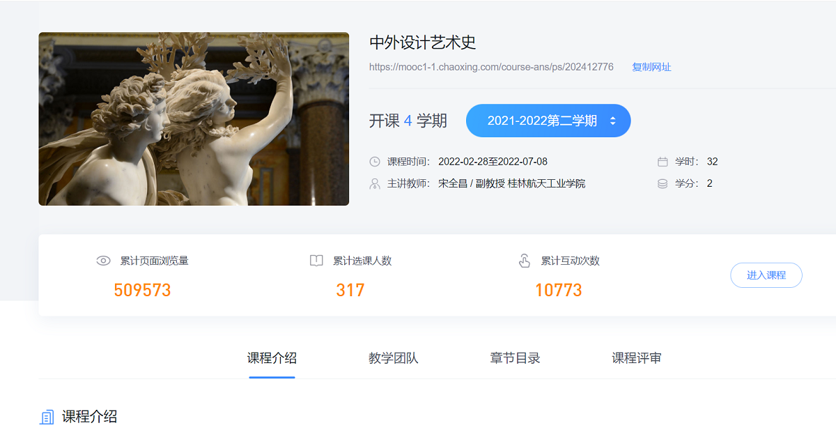 《中外设计艺术史》课程自2015年开设以来,历经7年建设,通过教学内容的重构、线上资源的拓展实现了课程内容的高阶性;通过双轨制内容的编排、中西方对比联系实现了教学形式的创新性;通过线上全过程数据保留、精细化过程成绩管理实现了教学环境的创新性;通过高强度迁移练习、能力测试型考试改革提高了学业的挑战度,最终建设成为设计学类示范性应用型理论课。