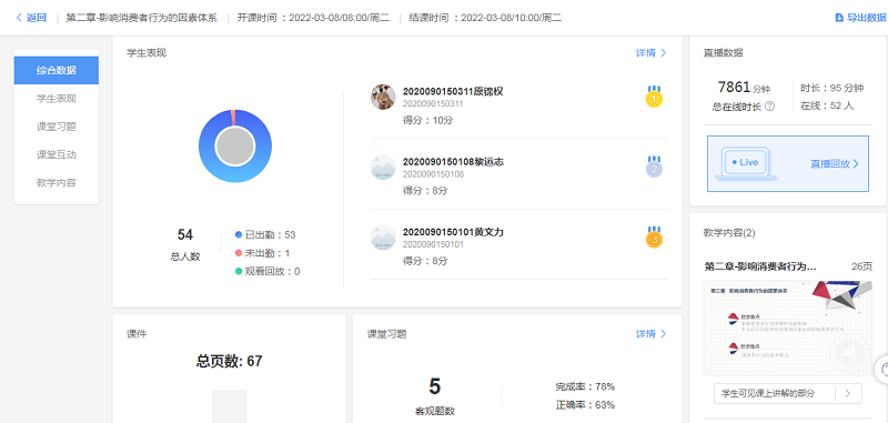 雨课堂记录的《消费心理与行为》学生学习数据