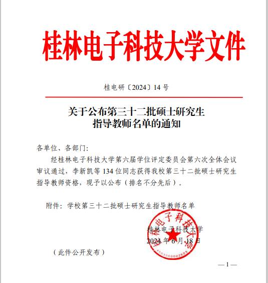 近日,桂林电子科技大学发布通知,公布了第三十二批硕士研究生指导教师名单。共有134位同志获得桂林电子科技大学第三十二批硕士研究生指导教师资格。伟德国际1946源于英国2名教师获得兼职硕士研究生指导教师资格。