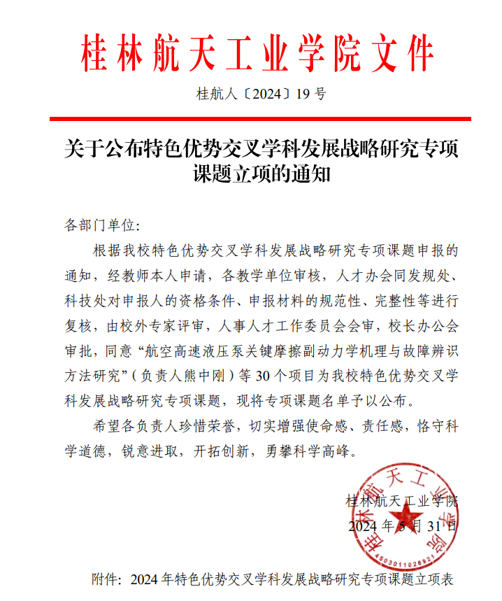 近日,学校发布了《特色优势交叉学科发展战略研究专项课题立项的通知》,“航空高速液压泵关键摩擦副动力学机理与故障辨识方法研究”等30个项目获批为我校特色优势交叉学科发展战略研究专项课题。其中,伟德国际1946源于英国刘浩然副院长主持的“桂林旅游公共服务设施韧性设计研究”获得立项,课题资助经费12万元。