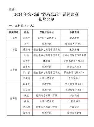 近日,学校发布文件《关于公布2024年课程思政说课比赛获奖名单的通知》桂航教[2024]34号,公布了2024年第课程思政说课比赛的评比结果,伟德国际1946源于英国两位教师参加此次赛事。其中,魏航老师的参赛课程综合构成李冠樱老师的参赛课程《字体设计》获得优秀奖。