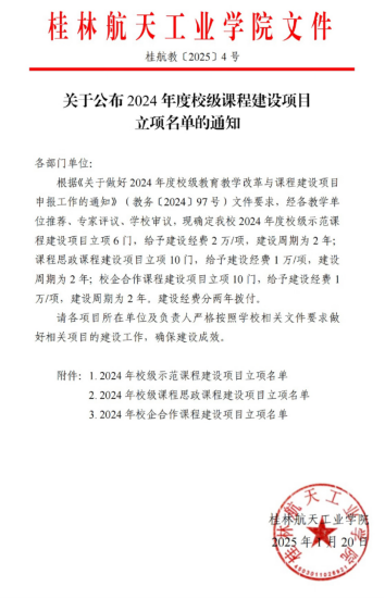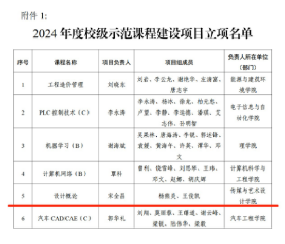 近日,学校公布2024年度校级课程建设项目立项名单。根据《关于做好2024年度校级教育教学改革与课程建设项目申报工作的通知》(教务〔2024〕97号)文件要求,经各教学单位推荐、专家评议、学校审议,现确定我校2024年度校级示范课程建设项目立项6门;课程思政课程建设项目立项10门;校企合作课程建设项目立项10门。