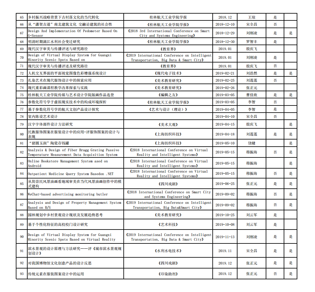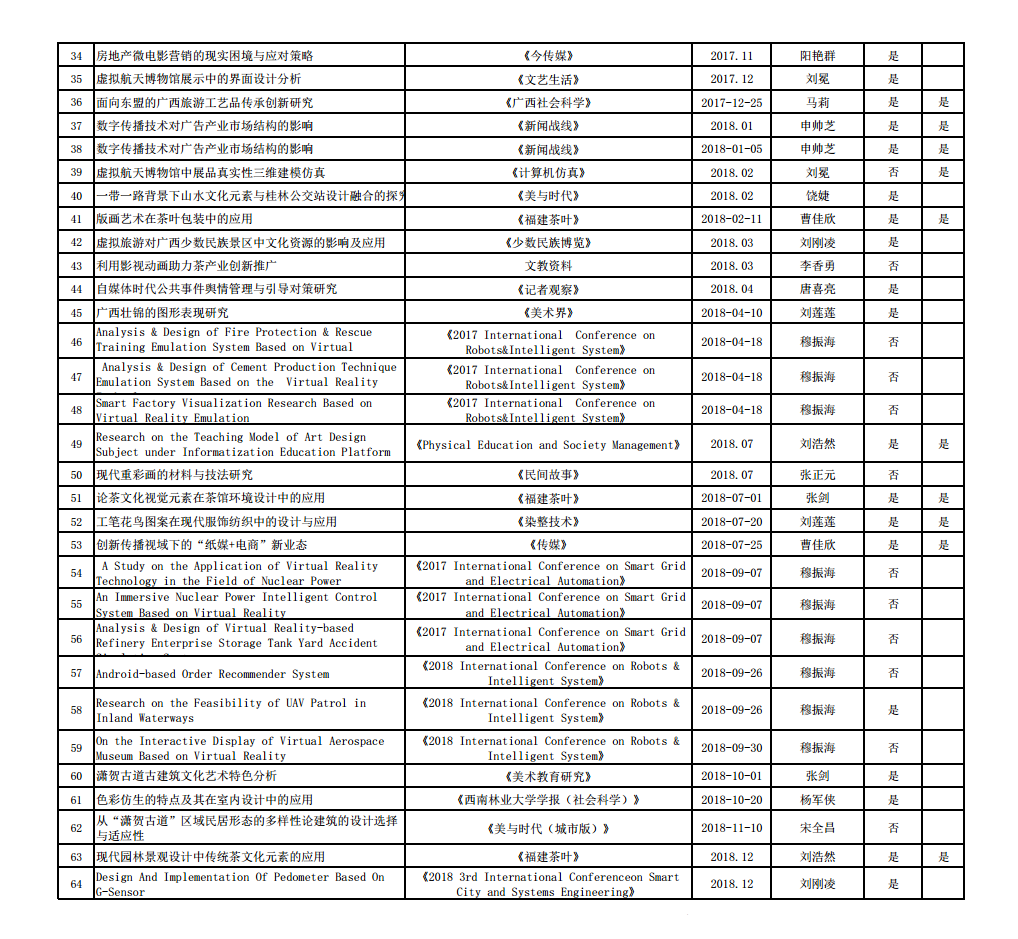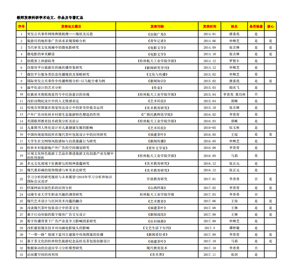 传媒与艺术设计学院教师部分论文及作品发表一览表