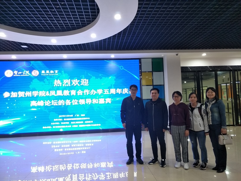 2019年11月15日—16日,学院副院长刘浩然带领本科专业负责人、教研室主任、实验实训中心管理人员等一行5人前往贺州学院,参加贺州学院与凤凰教育合作办学五周年高峰论坛。