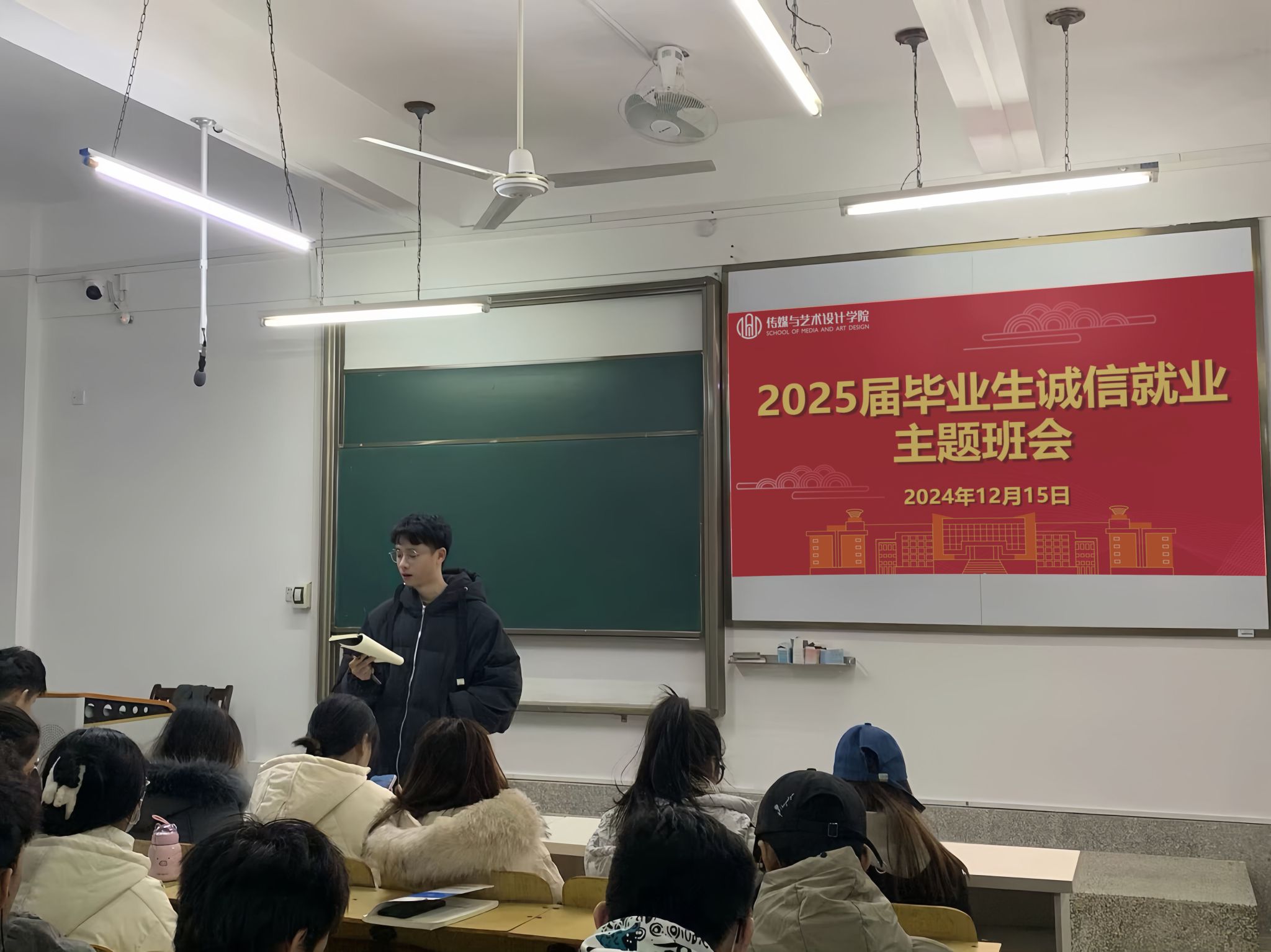 12月15日,学院毕业班辅导员给2025届毕业生开了一场以“诚信就业”为主题的毕业生班会。本次班会旨在引导毕业生树立正确的就业观念,提高诚信意识,为即将步入社会的毕业生们提供一次深入的交流与学习的机会。