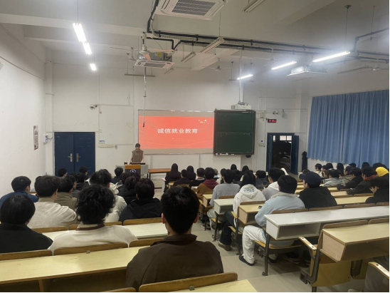 会上,付鑫裕老师结合自身多年就业指导经验,围绕三大核心教育主题开展了系统且细致的讲解。在就业心理健康教育环节,针对毕业生普遍存在的求职焦虑、自我怀疑等情绪,她通过分享真实求职案例、传授情绪调节方法,引导学生正确看待求职过程中的挫折,树立“先就业、再择业”的理性观念,同时鼓励学生结合自身专业特长科学规划求职路径;在就业安全教育环节,她聚焦虚假招聘、网络刷单诈骗、劳动合同陷阱等常见就业风险点,通过剖析典型诈骗案例,详细讲解了如何辨别正规招聘信息、核查企业资质、签订规范劳动合同等实用知识,着重强调了求职过程中的个人信息保护要点,切实增强学生的安全防范意识;在诚信就业教育环节,她结合高校毕业生就业相关政策文件,深入解读了诚信签约、诚信履约的重要意义,明确告知学生虚假签约、违约毁约等行为的不良后果,引导学生坚守就业诚信底线,树立正确的就业价值观。