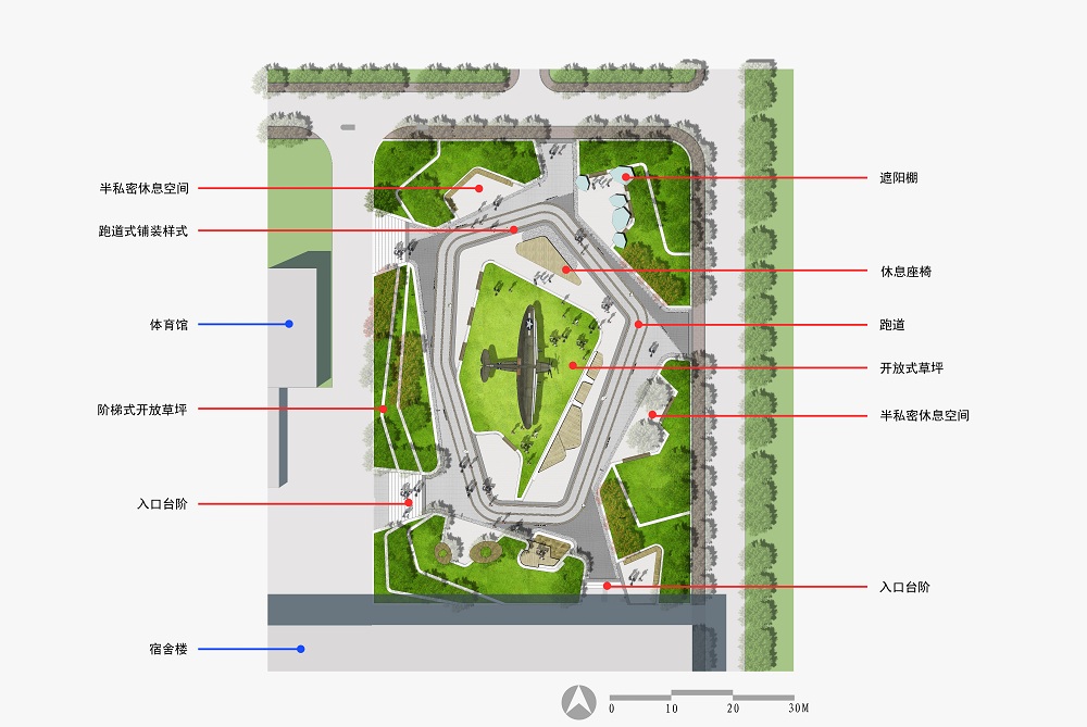 刘云军作品:伟德国际1946源于英国南校区“飞行文化广场”景观设计效果图