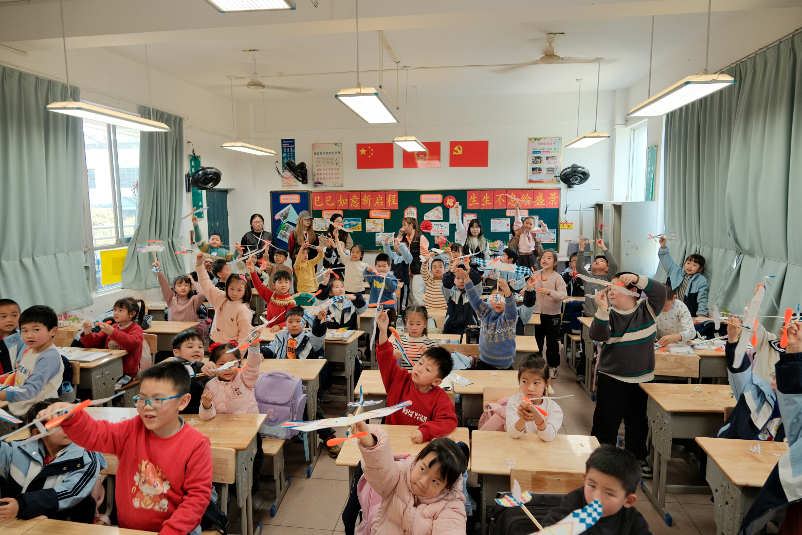 活动中,志愿者给小学生们讲述了雷锋的故事,带领孩子们了解了雷锋做好事不留名的感人事迹,让他们感受到平凡善举背后的伟大精神,立志做雷锋式的好少年。在接下来的手工实践中,志愿者们指导孩子们绘制航天主题儿童画和制作飞机模型,有的孩子们用一双双稚嫩的小手在画纸上涂鸦,绘出他们心中火箭和飞机的模样,有的孩子们摆开零件,争先恐后地拼贴飞机模型,他们专注地绘画、裁剪、拼贴,心无旁骛地沉浸在绘画和拼贴的世界中,仿佛每一件作品都透露着他们天性的释放和成功的喜悦。